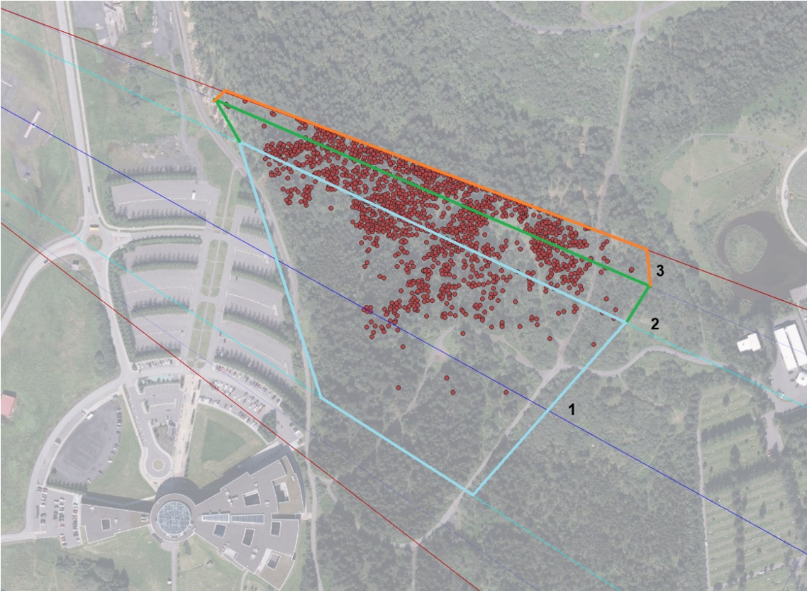 Tré í svæði 2 sem einnig er hluti PAPI hindranaflatar (grænt svæði á mynd), þegar þessum hluta er lokið er allur PAPI hindrana flötur orðinn hindranalaus – Lokið.