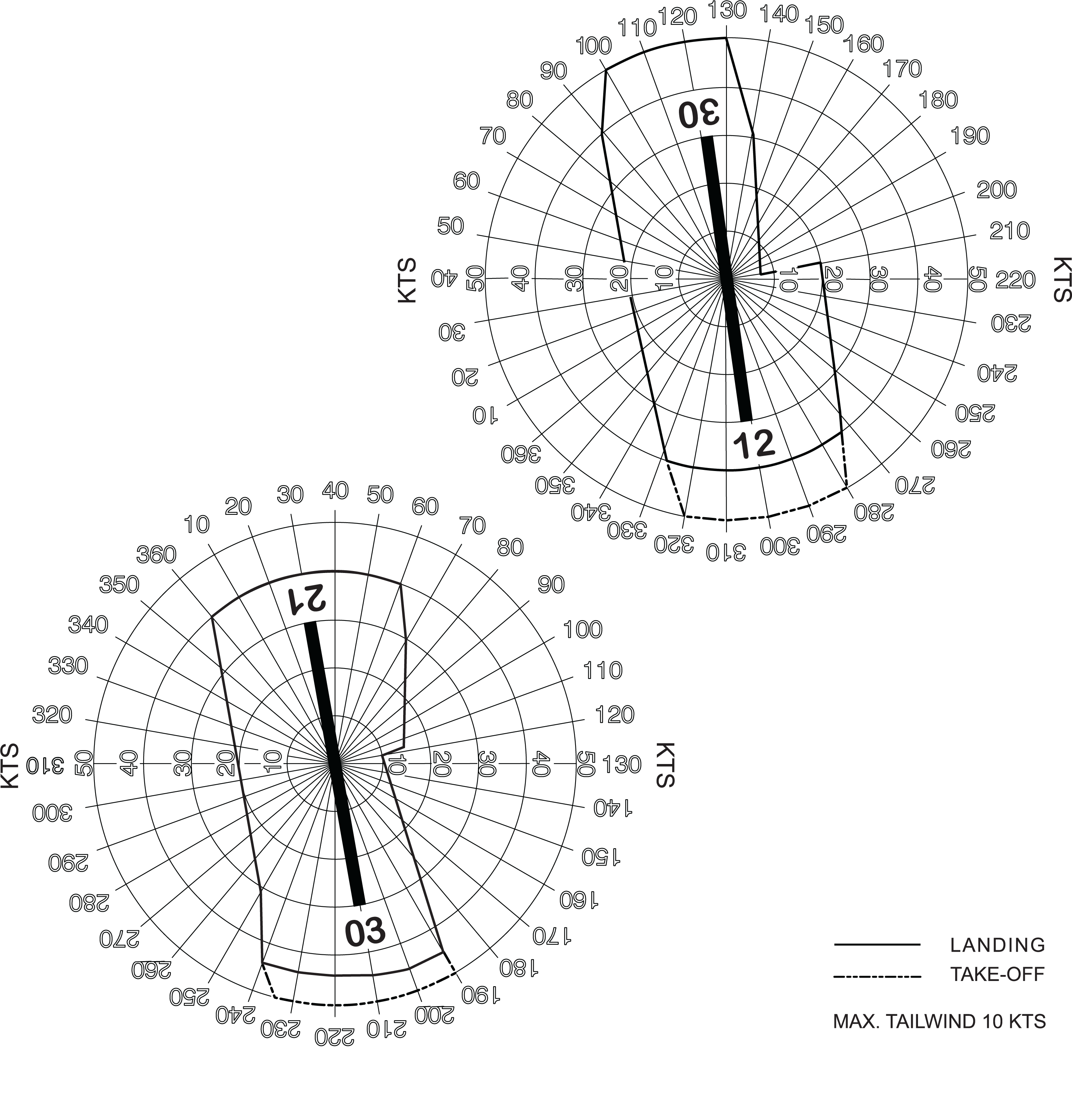 Wind speeds in excess of the figures quoted are likely to cause severe turbulence and/or wind shear on final or takeoff.